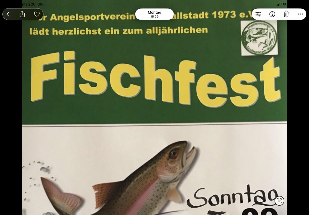 Das erste große Ziel des jungen Vereins war ein eigenes Vereinsgewässer. In Ermangelung eines solchen wurde zunächst ausschließlich im Main geangelt. Ein erstes Anglerfest (Backfischfest) fand am 08.09.1974 statt, es wurde zunächst eintägig, ab 1975 zweitägig und dann nach Beschluss vom August 1977 sogar dreitägig abgehalten. Die Aktiven wurden verpflichtet, eine festgesetzte Anzahl Rotaugen (z.B. 120 Stück 1975, 100 Stück 1976) zu fangen und sauber geputzt für das Fest zur Verfügung zu stellen.